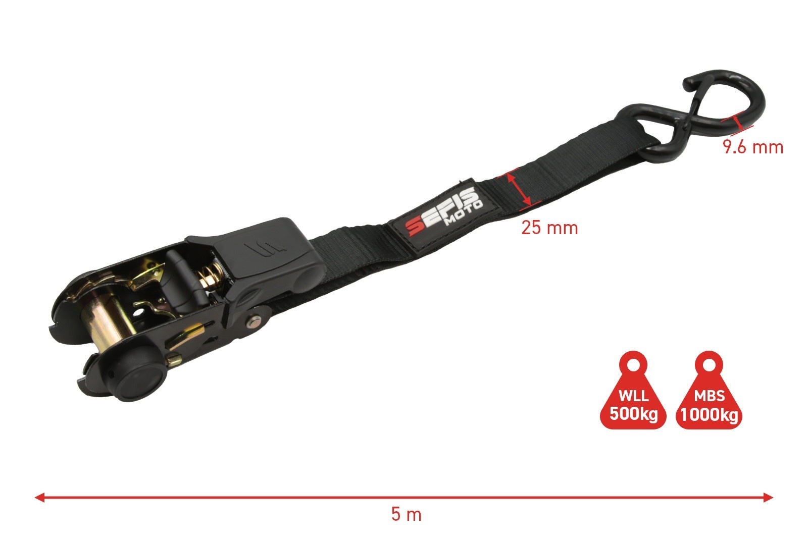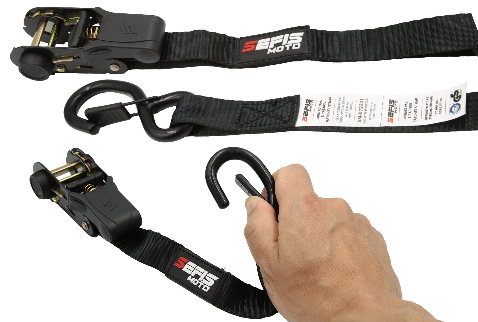 • obsah balení: 1x SEFIS C20 přepravní moto stojan,  1x SEFIS popruhy upínací s ráčnou 25mm x 5m 2ks