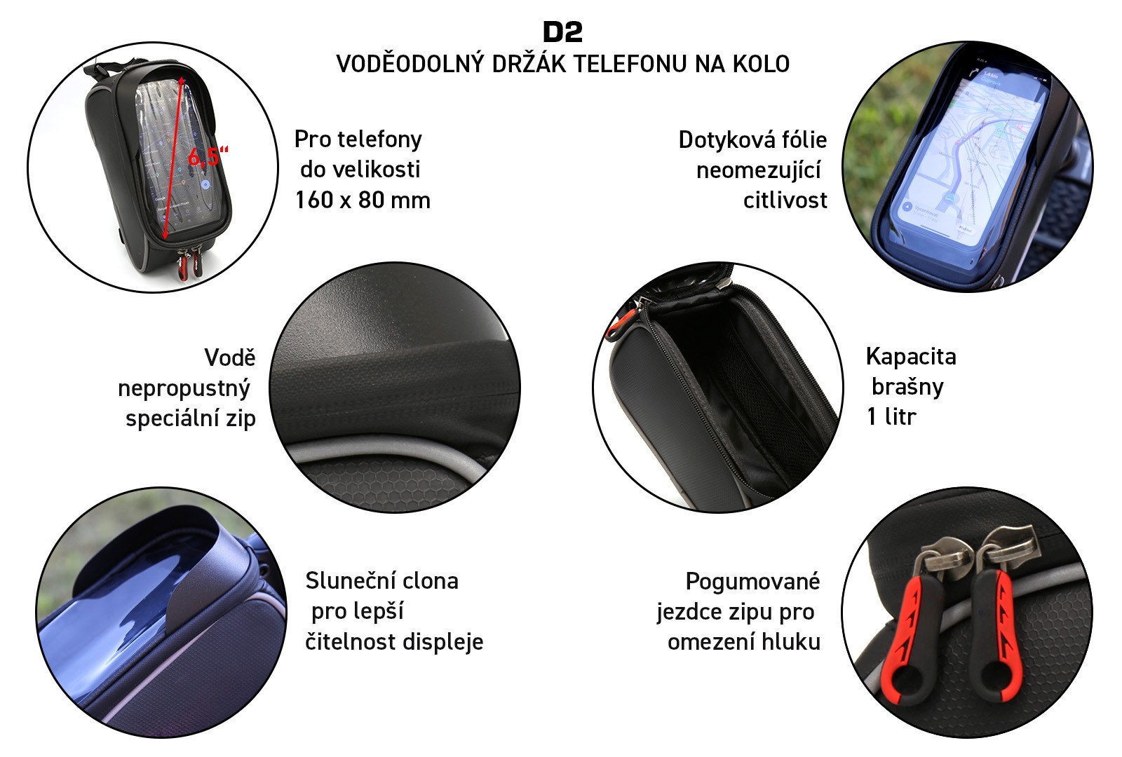 SEFIS D2 voděodolný držák telefonu na kolo s kapsou