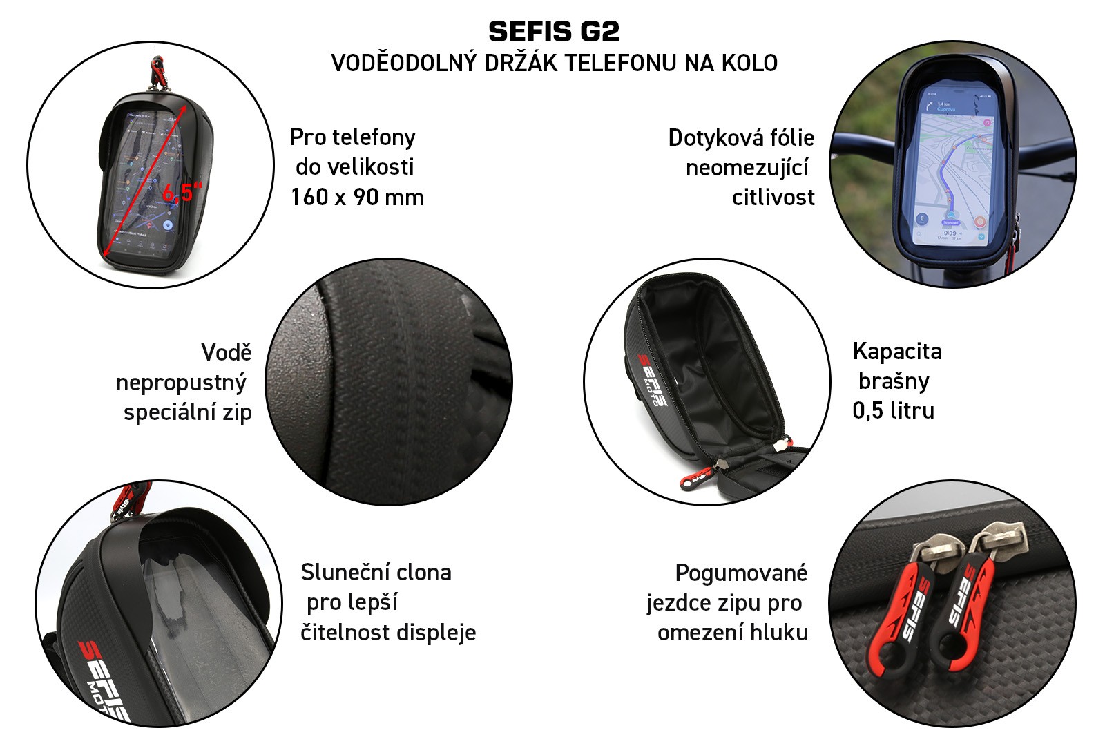 -26% SEFIS G2 voděodolný držák telefonu na kolo s kapsou