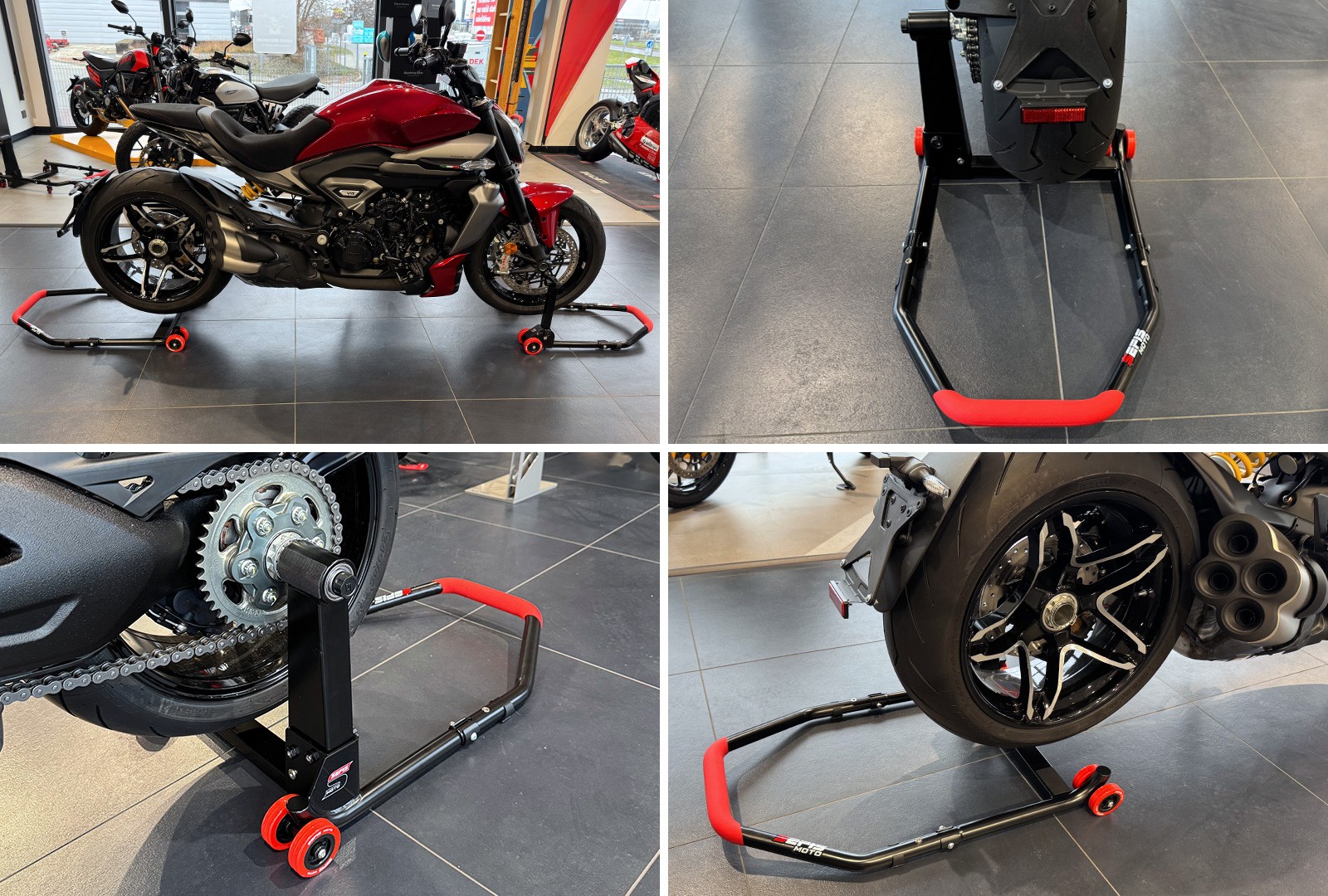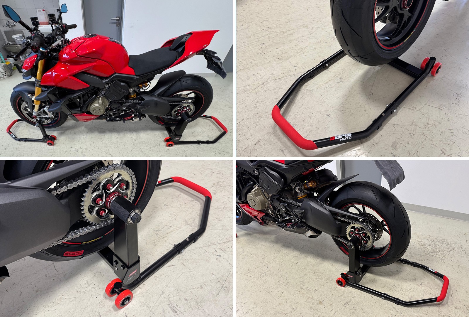 Motocykly s letmým uložením kola vyžadují ke zvednutí a servisování ten správný stojan. Se sklopným stojanem SEFIS M22 to nebude problém. Snadno se s ním manipuluje a zvednutí motocyklu tak zvládne každý i bez pomoci. Levostranný letmý stojan se hodí pro motocykly značek Honda, Ducati, Triumph, MV Agusta, KTM a BMW.