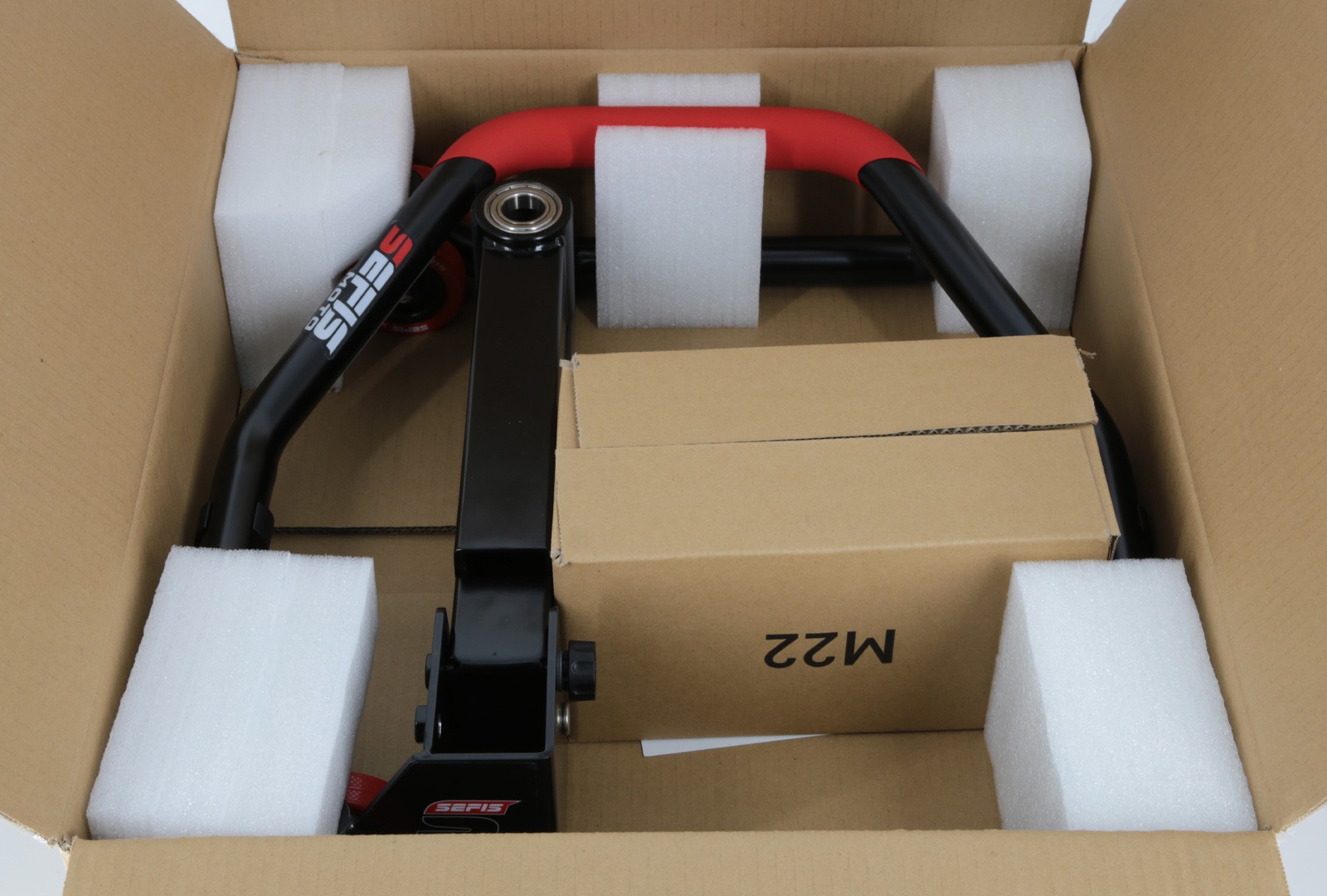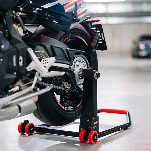 Stejne jako u ostatních moderních stojanů SEFIS je i u M22 samozřejmostí ergonomické pogumované madlo. To nejenom dobře vypadá, ale umožní pevný a spolehlivý úchop ideální pro pohodlné zvednutí motocyklu. Kromě pohodlí je madlo i protiskluzové pro lepší bezpečnost zvlášť při použití například v dílně nebo při čištění řetězu s potřísněnýma rukama nebo v rukavicích.