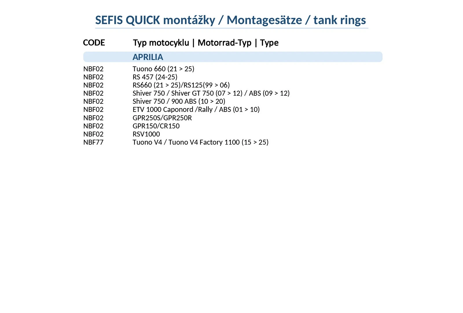 • přesný popis kompatibilních APRILIA modelů naleznete v obrázcích