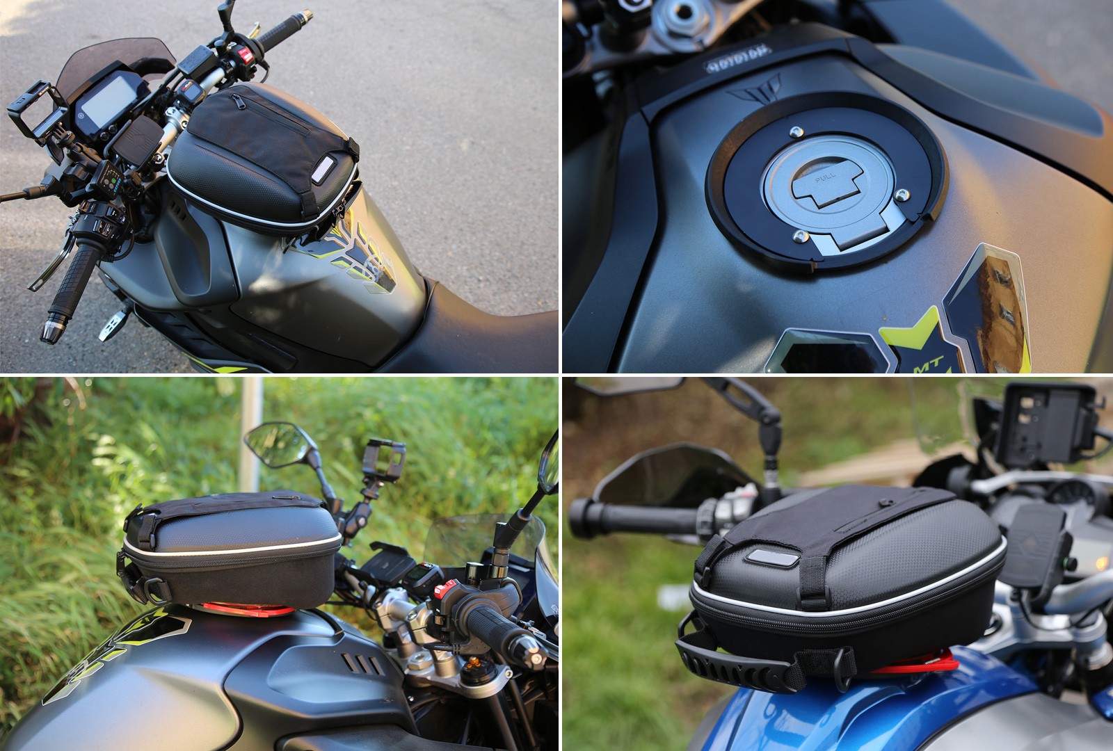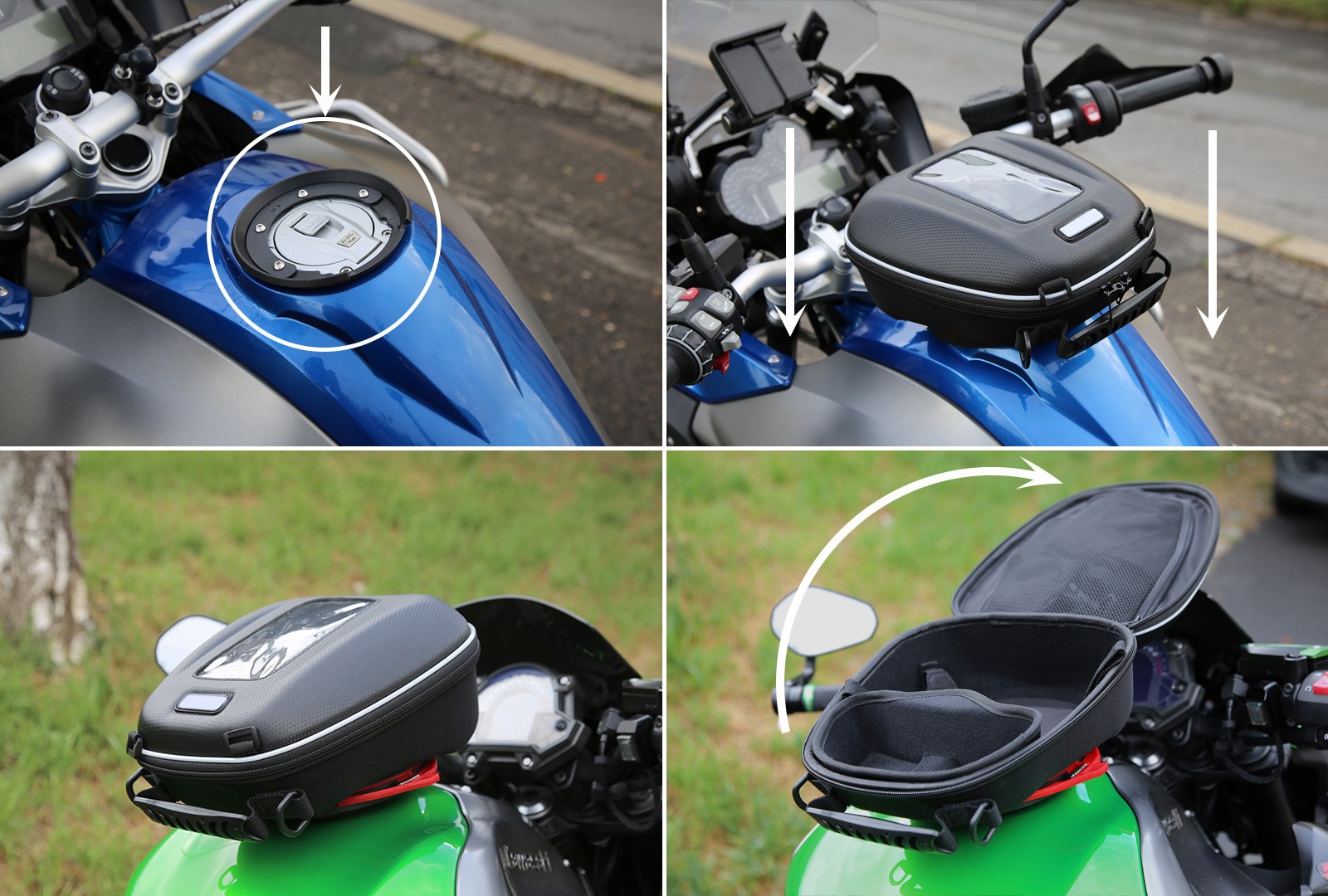 • připevnění quick systémem montážkou na víčko nádrže na daný typ motocyklu