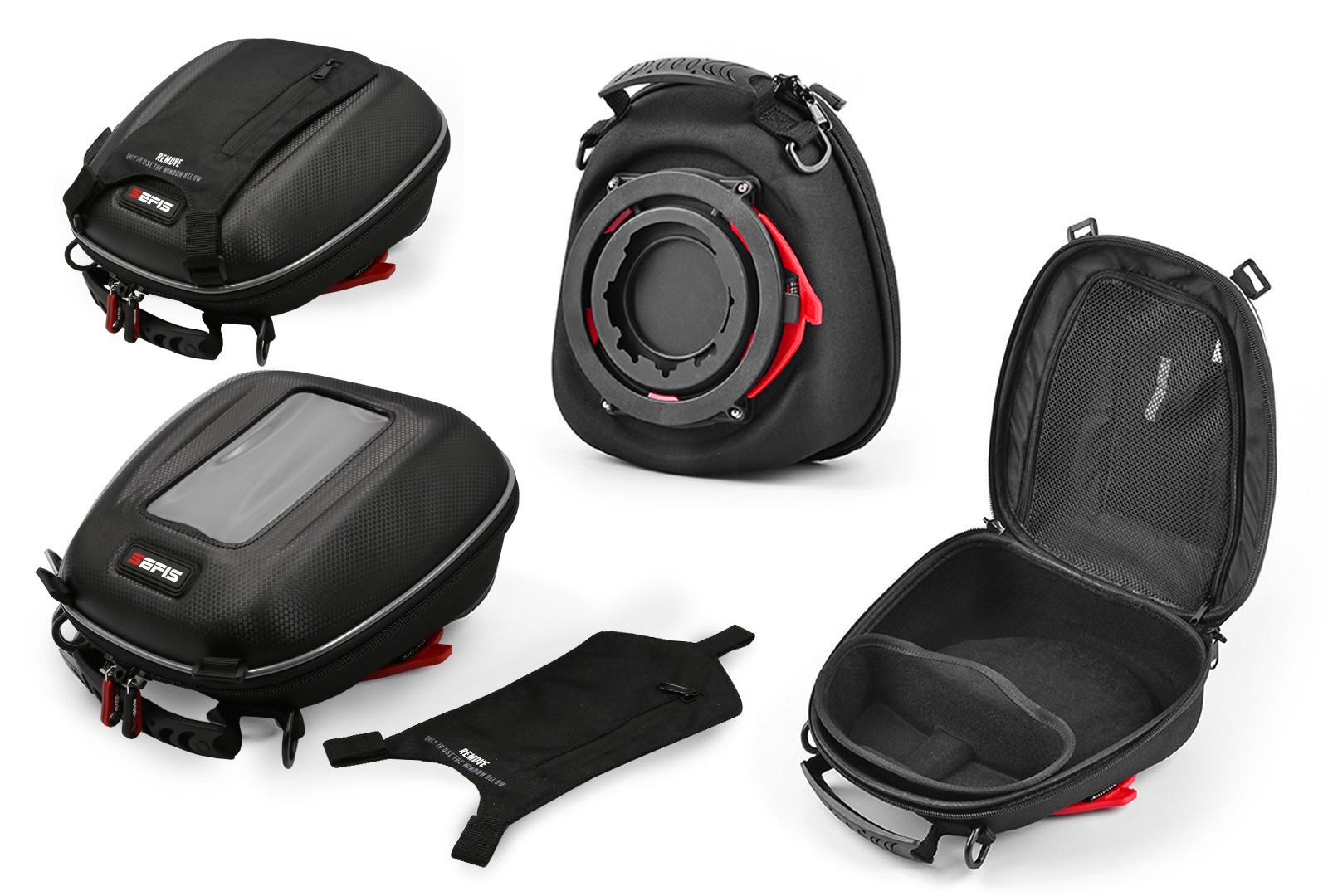 • v balení: brašna Quick, zvolená montážka podle typu motocyklu, 1x popruh přes rameno, nasazovací pláštěnka, vložka na brýle