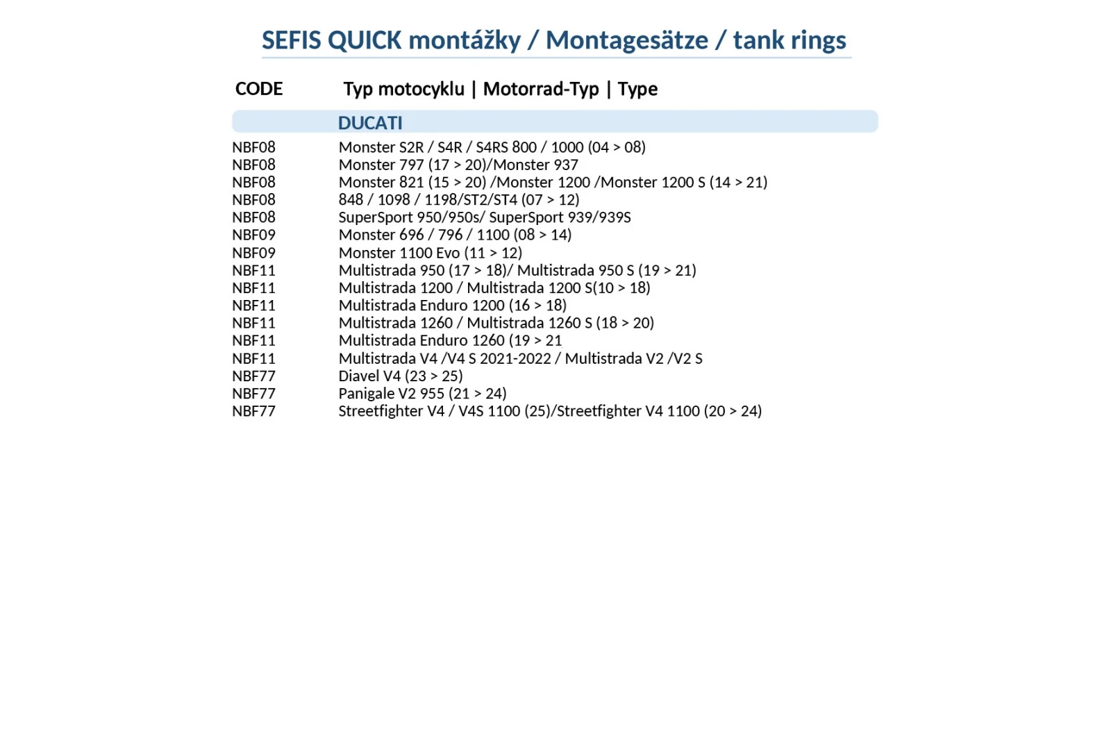 • přesný popis kompatibilních DUCATI modelů naleznete v obrázcích