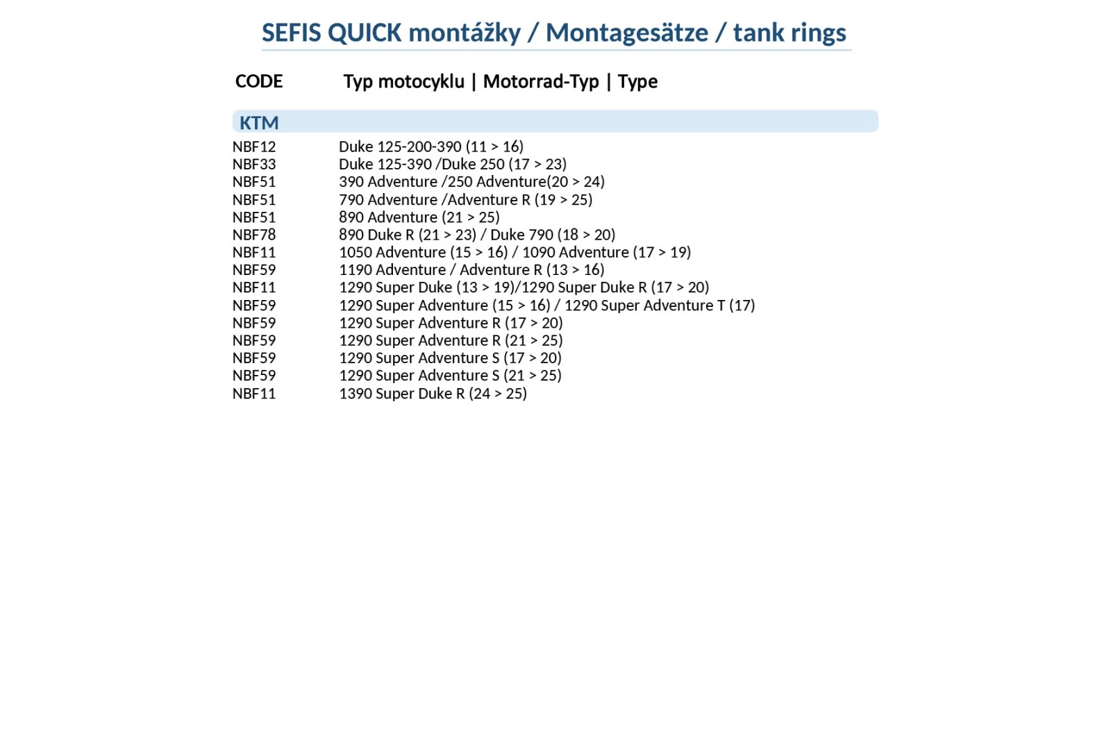 • přesný popis kompatibilních KTM modelů naleznete v obrázcích