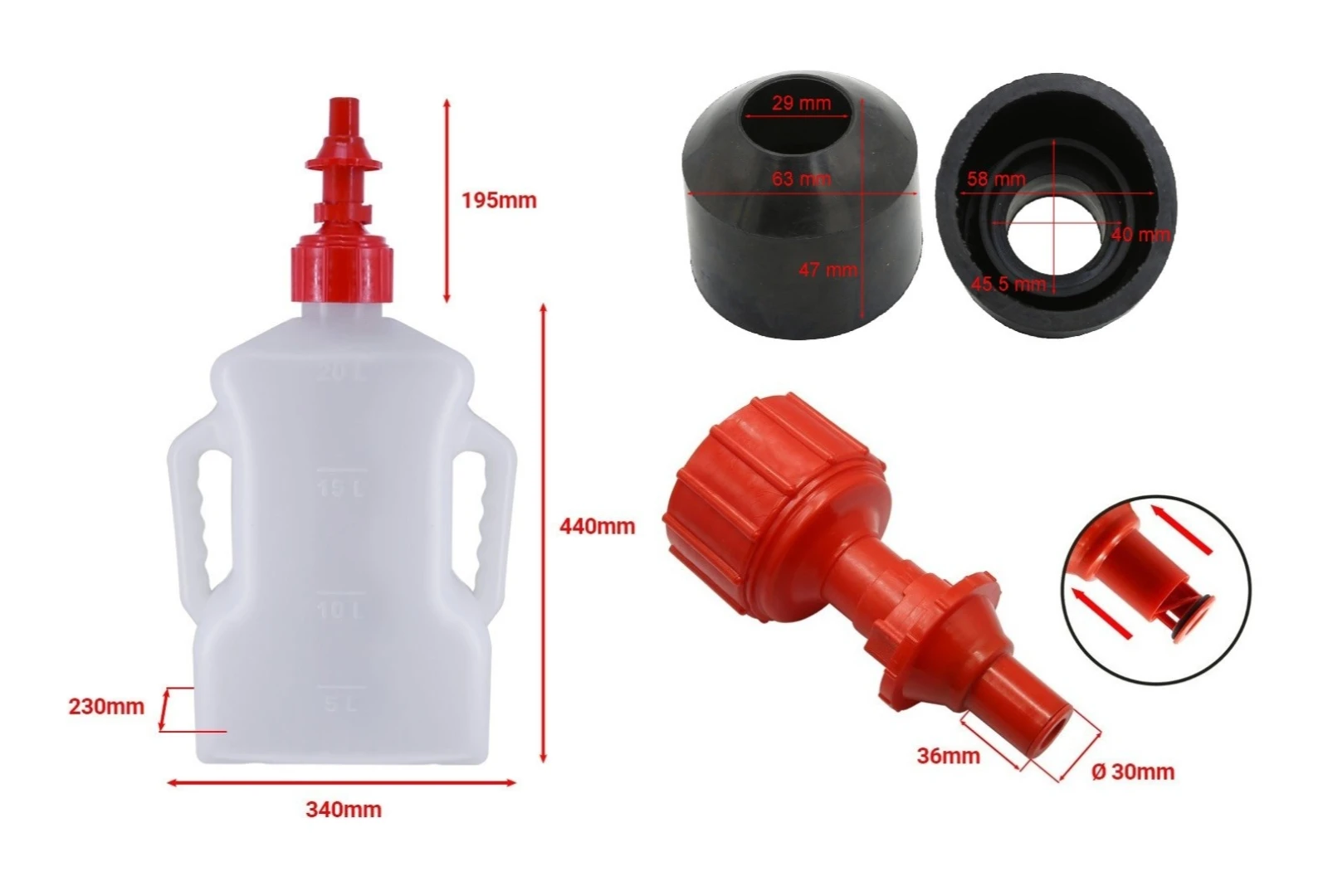Rychlotankovací kanystr je určený ke snadnému a rychlému doplnění pohonných hmot používaný především pro okruhové a MX motocykly. Má dvě madla pro snadnou manipulaci i s plným kanystrem.