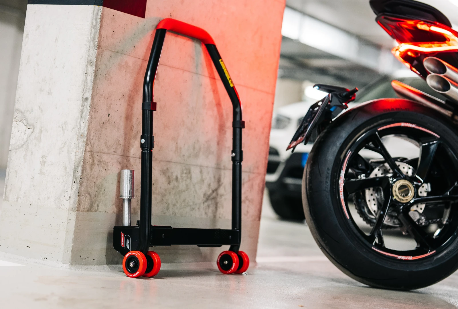 SEFIS M20U sklopný pojízdný univerzální moto stojan přední a zadní set